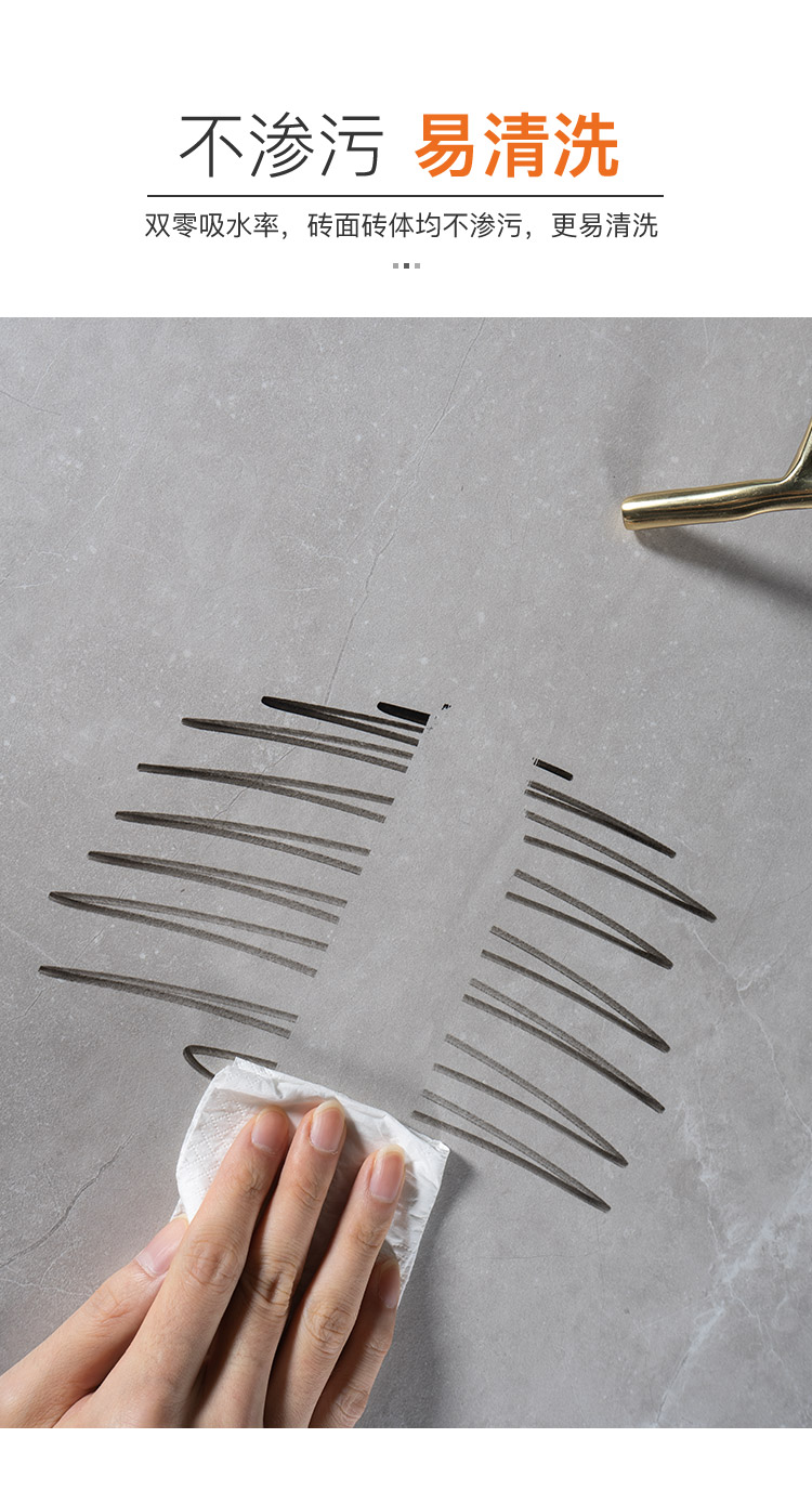 復(fù)刻大理石的細(xì)膩平滑觸感,同時因石英磚材質(zhì),表面更致密順滑,兼具美觀與耐用性