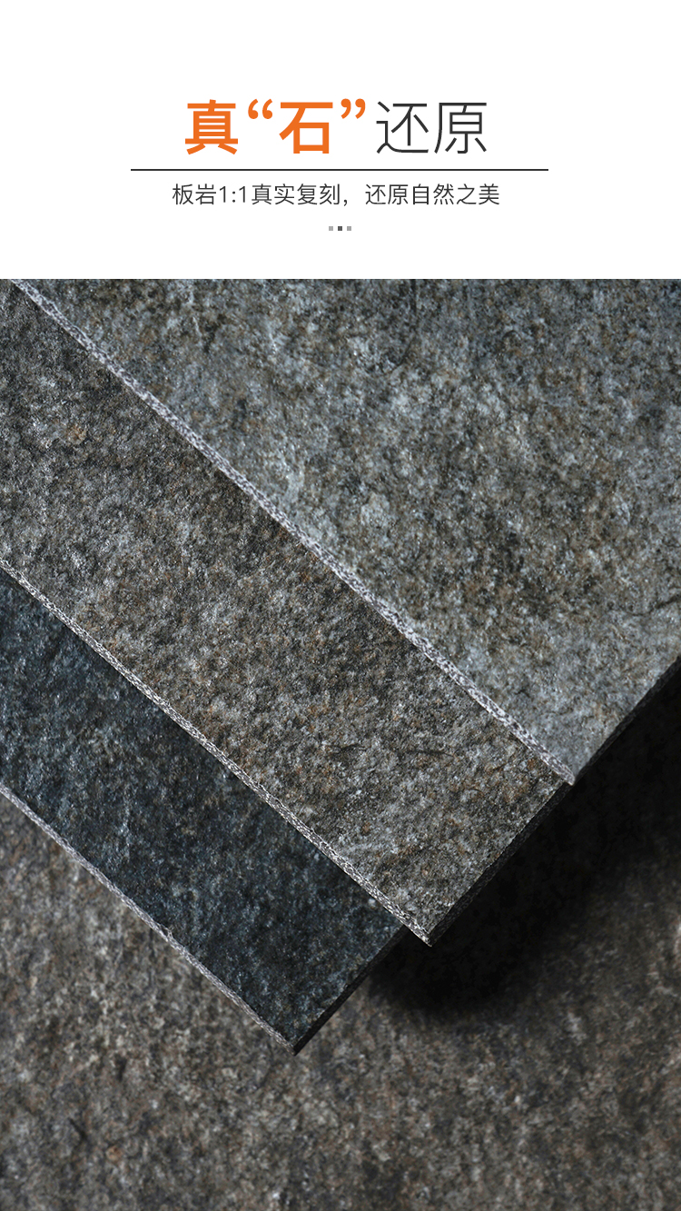 巖石面,模壓還原板巖紋理,啞光封釉強(qiáng)化其防潮防污屬性