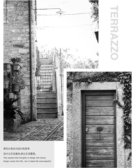 水磨石是大家比較熟悉的一種石材,水磨石的英文 Terrazzo 正是起源于意大利文的Terrace。16 世紀(jì)中期,威尼斯工匠為貴族們裝修時(shí),總會(huì)剩余不少大理石殘留。這些大小不一不規(guī)則的大理石邊角料,便被他們偷偷帶到自己家里裝點(diǎn)自家小院的外墻。簡(jiǎn)單處理后得到意想不到的效果,這種工藝后來(lái)通過(guò)意大利人遷移到其他國(guó)家。